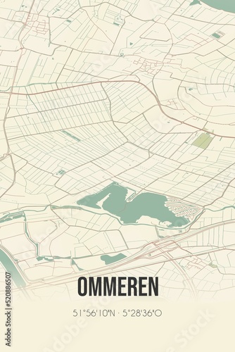 © Rezona, Obraz premium Retro Dutch city map of Ommeren located in Gelderland. Vintage street map.