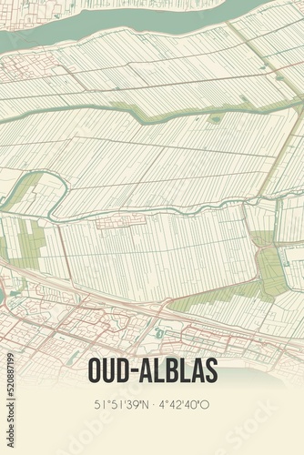Obraz premium Retro Dutch city map of Oud-Alblas located in Zuid-Holland. Vintage street map.