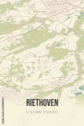© Rezona, Fototapeta premium Retro Dutch city map of Riethoven located in Noord-Brabant. Vintage street map.