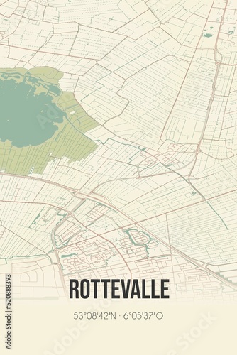 © Rezona, Obraz premium Retro Dutch city map of Rottevalle located in Fryslan. Vintage street map.
