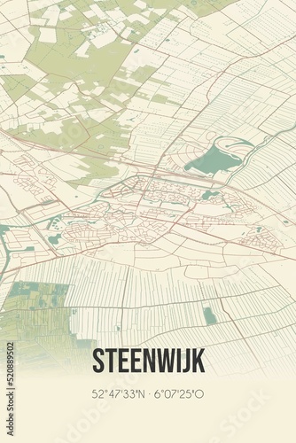 © Rezona, Obraz premium Retro Dutch city map of Steenwijk located in Overijssel. Vintage street map.