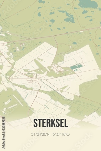 © Rezona, Obraz premium Retro Dutch city map of Sterksel located in Noord-Brabant. Vintage street map.