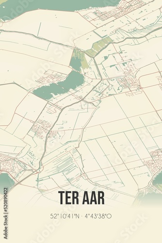 Obraz premium Retro Dutch city map of Ter Aar located in Zuid-Holland. Vintage street map.