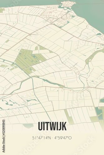 © Rezona, Obraz premium Retro Dutch city map of Uitwijk located in Noord-Brabant. Vintage street map.