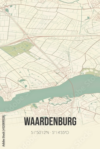 © Rezona, Obraz premium Retro Dutch city map of Waardenburg located in Gelderland. Vintage street map.