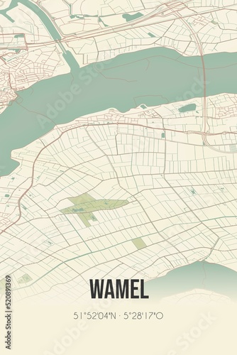 Obraz premium Retro Dutch city map of Wamel located in Gelderland. Vintage street map.