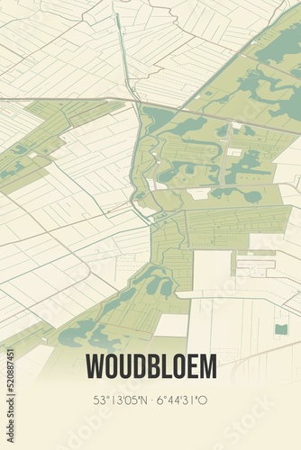 © Rezona, Obraz premium Retro Dutch city map of Woudbloem located in Groningen. Vintage street map.