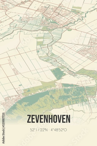 © Rezona, Fototapeta premium Retro Dutch city map of Zevenhoven located in Zuid-Holland. Vintage street map.