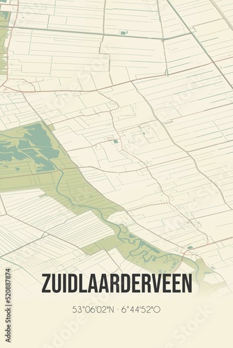 © Rezona, Obraz premium Retro Dutch city map of Zuidlaarderveen located in Drenthe. Vintage street map.