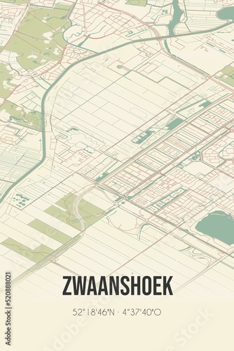Obraz premium Retro Dutch city map of Zwaanshoek located in Noord-Holland. Vintage street map.