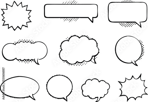Fototapeta premium Retro empty comic bubbles and elements set with black halftone shadows. in retro vintage and pop art style. Vector illustration,