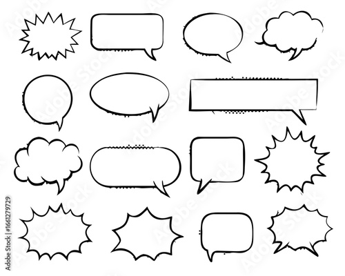 Fototapeta premium Retro empty comic bubbles and elements set with black halftone shadows. in...