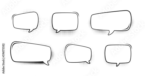 © Aletheia Shade, Fototapeta premium Retro empty comic bubbles set with black halftone shadows. Vector illustration, vintage design, pop art style