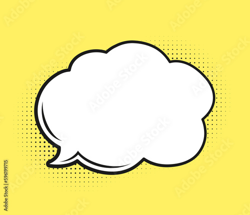 Fototapeta premium Retro empty comic speech bubble thought cloud with black halftone shadows. Vector illustration text frame border, vintage design, pop art style