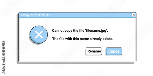 Fototapeta premium Retro error window with text. Old warning message in blue color. Desktop bug notification.