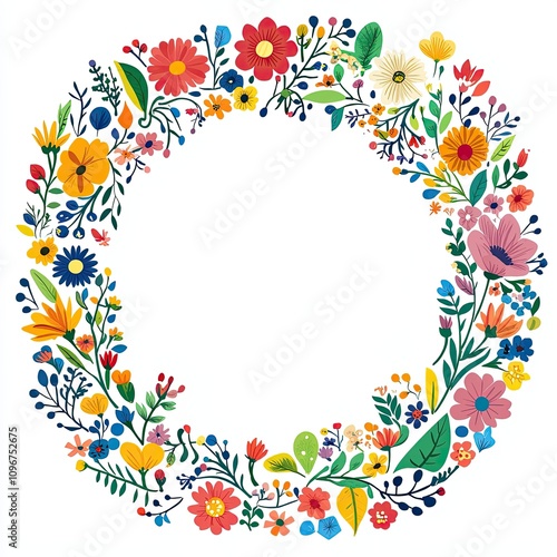 Obraz premium Retro Floral Design with Empty Round Space for Customization