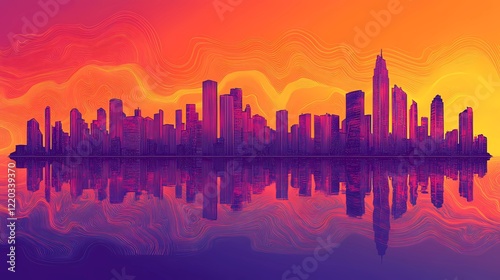 © Nikita44, Fototapeta premium Retro futuristic background showcasing a digital grid and glowing horizon, designed in a timeless comic book illustration style