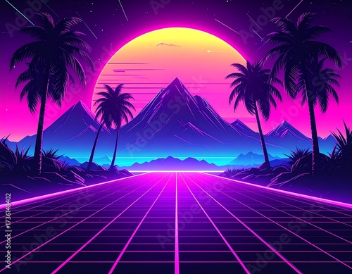 Naklejka premium Retro Futuristic Landscape.