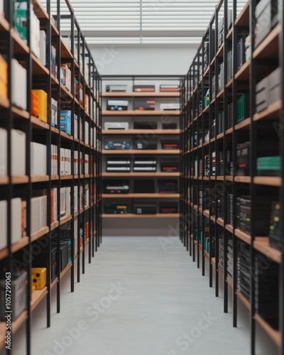 © pattaphorn, Obraz premium Retro Game Store with Console Shelves