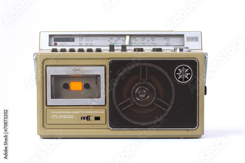 © pixindy, Obraz premium retro ghetto blaster isolated on white background.