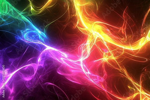 © Saqib, Obraz premium Retro groovy neon lights with glowing effects in a psychedelic swirl, creating a vibrant and energetic abstract background.