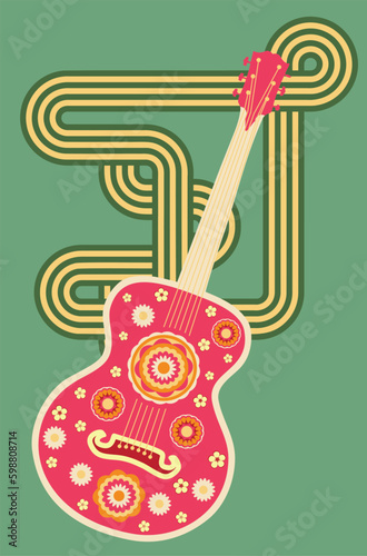 © AnnaPa, Naklejka premium Retro guitar with flowers