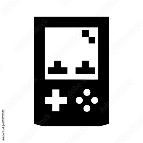 Obraz premium Retro handheld game console emitting pixel blocks silhouette vector