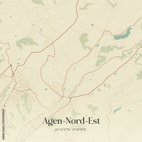© Rezona, Fototapeta premium Retro map of Agen-Nord-Est, Nouvelle-Aquitaine, France. Vintage street map.