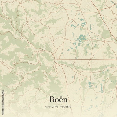 © Rezona, Naklejka premium Retro map of Bo�n, Auvergne-Rh�ne-Alpes, France. Vintage street map.