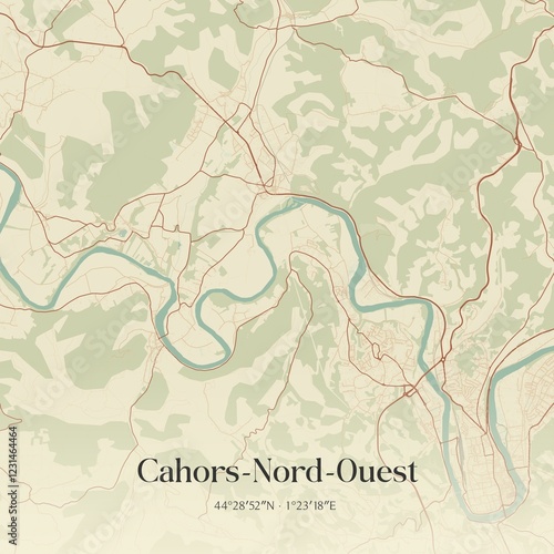 © Rezona, Fototapeta premium Retro map of Cahors-Nord-Ouest, Occitanie, France. Vintage street map.