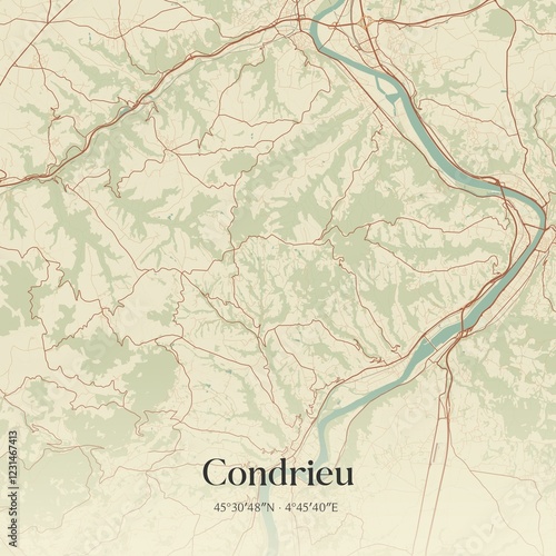 © Rezona, Obraz premium Retro map of Condrieu, Auvergne-Rh�ne-Alpes, France. Vintage street map.