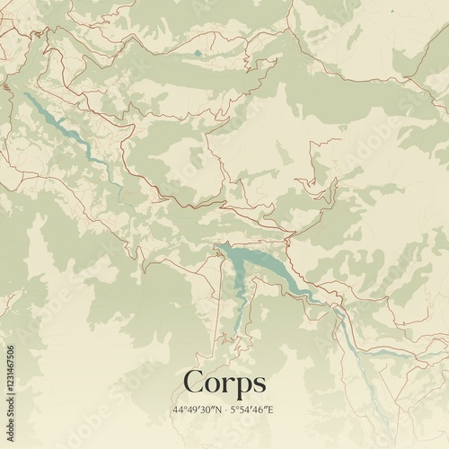 © Rezona, Fototapeta premium Retro map of Corps, Auvergne-Rh�ne-Alpes, France. Vintage street map.