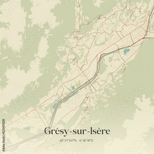 © Rezona, Fototapeta premium Retro map of Gr�sy-sur-Is�re, Auvergne-Rh�ne-Alpes, France. Vintage street map.