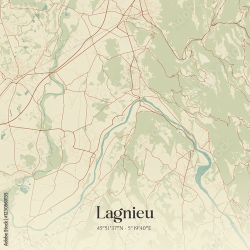 © Rezona, Fototapeta premium Retro map of Lagnieu, Auvergne-Rh�ne-Alpes, France. Vintage street map.