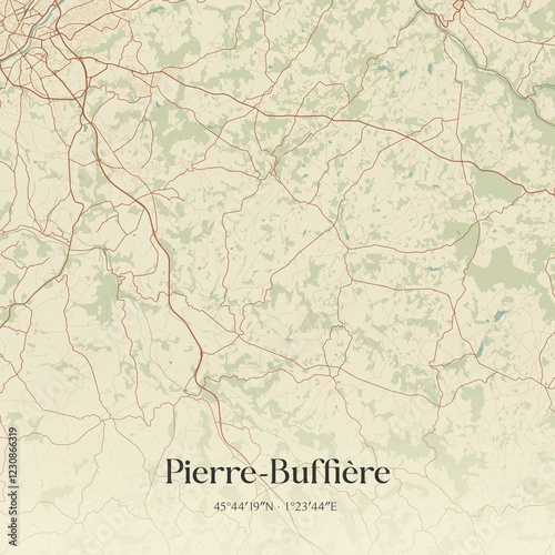 © Rezona, Fototapeta premium Retro map of Pierre-Buffi�re, Nouvelle-Aquitaine, France. Vintage street map.