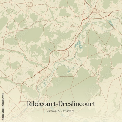 © Rezona, Fototapeta premium Retro map of Rib�court-Dreslincourt, Hauts-de-France, France. Vintage street map.