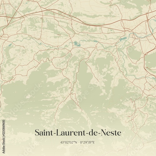 © Rezona, Fototapeta premium Retro map of Saint-Laurent-de-Neste, Occitanie, France. Vintage street map.