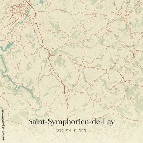 Fototapeta premium Retro map of Saint-Symphorien-de-Lay, Auvergne-Rh�ne-Alpes, France. Vintage...