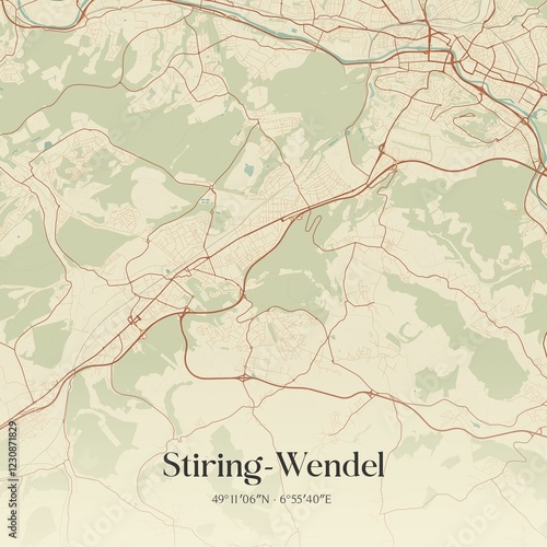© Rezona, Fototapeta premium Retro map of Stiring-Wendel, Grand Est, France. Vintage street map.
