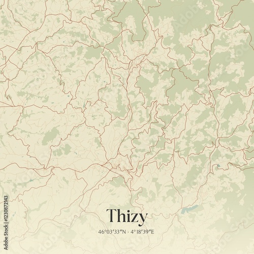 © Rezona, Fototapeta premium Retro map of Thizy, Auvergne-Rh�ne-Alpes, France. Vintage street map.