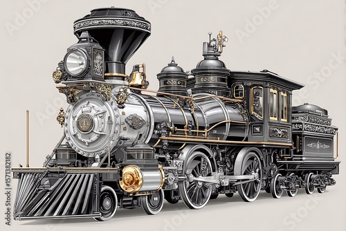 © Subir, Fototapeta premium Retro mechanical train engine illustration high resolution picture