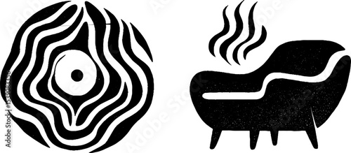 Obraz premium Retro music vibe with vinyl record and armchair design