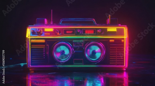 Fototapeta premium Retro Neon Boombox on Dark Background