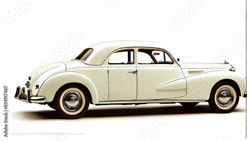 © Toseef, Obraz premium Retro old car on a white background, Ai Generated