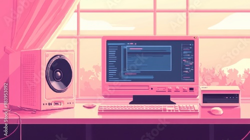 Fototapeta premium Retro old computer user interface,Pink Y2K computer window page and retro interface of PC screenTrendy,y2k pc element,8 bit pixel art,Transgressive conceptual modern art,kawaii retro 90s style.