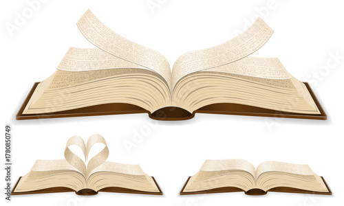 © kontur-vid, Obraz premium retro open book with pages cartoon stock vector illustration isolated on white background
