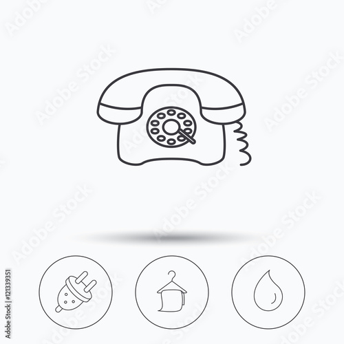 © tanyastock, Naklejka premium Retro phone, bath towel and electric plug.