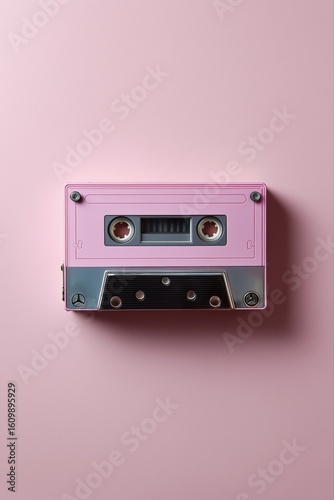 Obraz premium Retro pink audio cassette on minimalist pink background