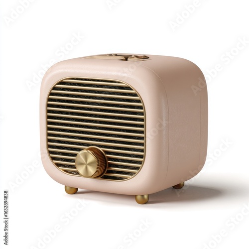 © Farida, Fototapeta premium Retro pink portable speaker with vintage design and gold accents