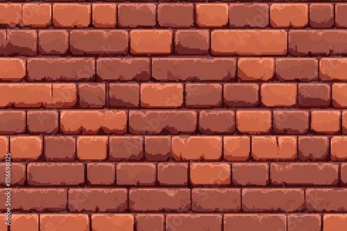 © Space Priest, Obraz premium Retro pixel art brick wall texture with red tones and rectangular patterns